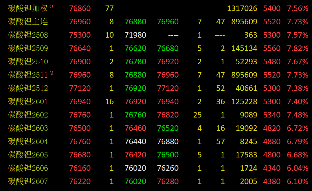 碳酸锂期货主力合约开盘涨停,报81000元/吨,成交额超17亿。 碳酸锂期货所有合约均...