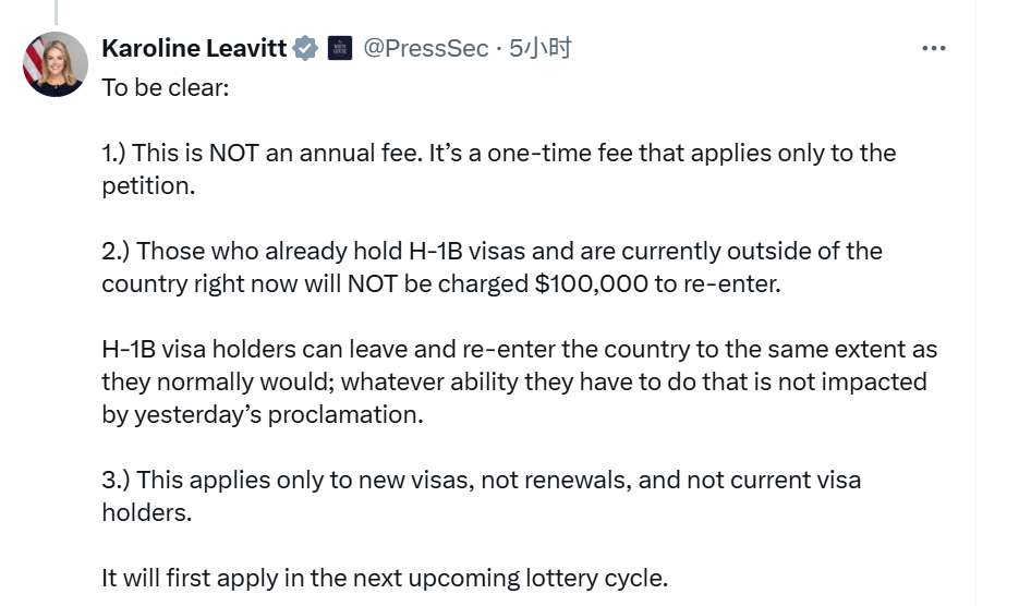 嘉盛app下载:特朗普H-1B新政引恐慌 白宫紧急澄清:一次性收费、新老划断